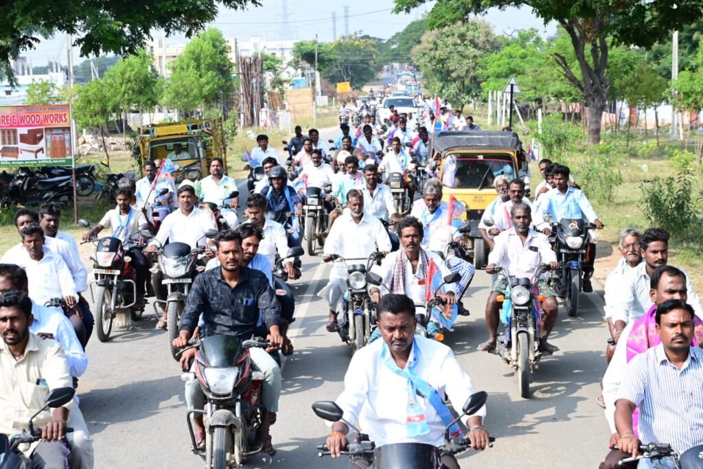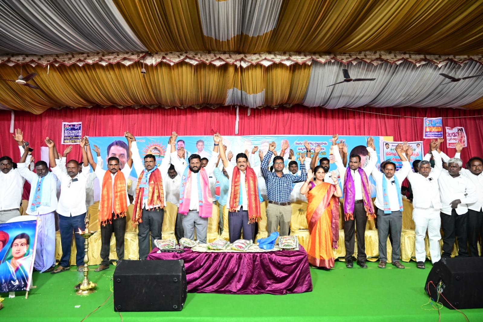 పెద్దకొత్తపల్లి చౌరస్తా నుండి సభా ప్రాంగణం వరకు బైక్ ర్యాలీ,డప్పు వాయిద్యాలు,పూలు చల్లుతూ, బాణాసంచాలతో స్వాగత ర్యాలీ నిర్వహించారు..