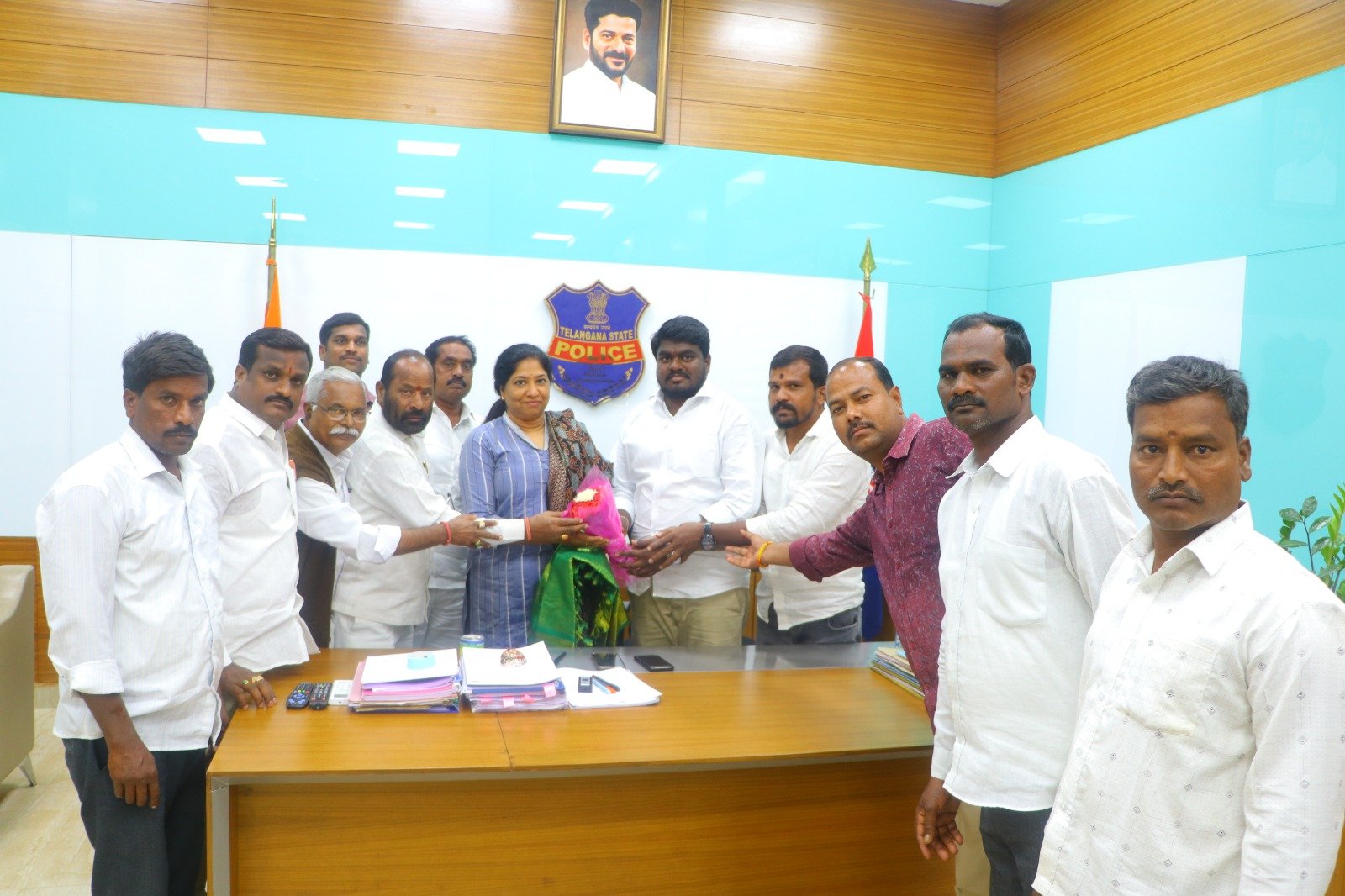 జిల్లాలో దొంగతనం జరిగిన పందులను పోలీస్ కమిషనర్ డాక్టర్ బి అనురాధ ఐపీఎస్ మేడమ్ గారి చొరవతో పోలీస్ అధికారులు ఐదు కేసులలో పందులను మరియు డబ్బులను రికవరీ చేసినందుకు తెలంగాణ ఎరుకల సంఘం రాష్ట్ర ప్రెసిడెంట్ కుత్తడి రాములు, రాష్ట్ర జనరల్ సెక్రెటరీ మండలాపురం గోపాల్ మరియు మండల జిల్లా కార్యవర్గ సభ్యులు ఈరోజు కమిషనర్ కార్యాలయంలో పోలీస్ కమిషనర్ మేడం గారిని కలిసి పూల బొకేను అందజేసి కృతజ్ఞతలు తెలిపారు.