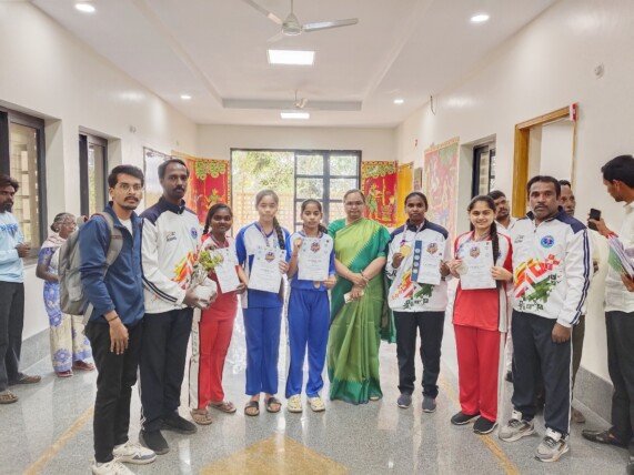 మధ్యప్రదేశ్ కు ఎంపికైన సిద్దిపేట జిల్లా అమ్మాయిలు R. ప్రవళిక, P. గీతిక, M. గగన, S. మాన్వి, P. సాయి శ్రీవల్లి రెడ్డి,