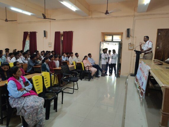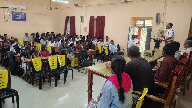 అక్షర న్యూస్ :కమిషనర్ ఆఫ్ పోలీస్ సిద్దిపేట గారి ఆదేశానుసారం తెలంగాణ రాష్ట్ర ప్రభుత్వం ప్రతిష్టాత్మకంగా నిర్వహిస్తున్న రోడ్ సురక్ష అభియాన్/ రహదారి భద్రత అభియాన్ ప్రోగ్రాంలో భాగంగా సిద్దిపేట ట్రాఫిక్ ఇన్స్పెక్టర్ కె ప్రవీణ్ కుమార్ గారు సిద్దిపేట పట్టణంలోని ప్రభుత్వ డిగ్రీ కళాశాల విద్యార్థుల విద్యార్థులకు రోడ్డు భద్రత మరియు ట్రాఫిక్ రూల్స్ గురించి చెప్పడం జరిగింది.రోడ్డు ప్రమాదాల నివారణకు ప్రతి ఒక్కరూ కృషి చేయాలి.మానవ తప్పిదం వల్లే రోడ్డు ప్రమాదాలు ఎక్కువగా జరుగుతున్నాయి.రోడ్డు నిబంధనలు ట్రాఫిక్ నిబంధనలు పాటించి పాటించి వాహనాలు నడిపి క్షేమంగా గమ్యస్థానాలకు చేరుకోవాలి.విద్యార్థిని విద్యార్థులు నేర్చుకున్న ట్రాఫిక్ నిబంధనలు రోడ్డు నిబంధనల గురించి తల్లిదండ్రులకు తెలియపరచాలని సూచించారు.