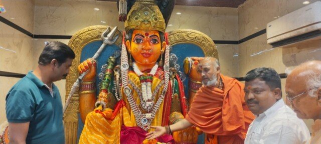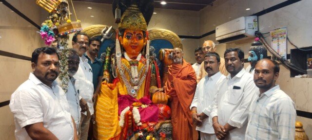 అక్షర న్యూస్ :సిద్దిపేట జిల్లా దుబ్బాక మండలం పెద్ద గుండవెల్లి శ్రీ రేణుకా మాత అమ్మవారిని దర్శించుకున్న రాములు మహారాజ్.. గత 75 సంవత్సరాలుగా చరిత్ర ఉన్న అమ్మవారు కొంగు బంగారమై ఈ ప్రాంత ప్రజలకు దర్శనమిస్తున్నారని, మహిమలు కలిగిన అమ్మవారిని దర్శించుకోవడం ఎంతో సంతోషంగా భావిస్తున్నాను అని రాములు మహారాజ్ సంతోషం వ్యక్తం చేశారు. శ్రీ రేణుక మాత ఆలయ కమిటీ ఆధ్వర్యంలో సన్మానం చేసి అమ్మవారి చిత్రపటాన్ని అందజేసి స్వామివారి ఆశీస్సులు తీసుకున్న ఆలయ కమిటీ చైర్మన్ ఏల్పుల మహేష్, క్యాషియర్ కొండ్ర యాదగిరి.. స్వామివారి వెంట బిక్షపతి, శ్రీనివాస్ గౌడ్, కమలాకర్ తదితరులు పాల్గొన్నారు.