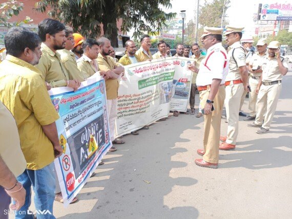ఇందులో భాగంగా అసిస్టెంట్ మోటర్ వెహికల్స్ ఇన్స్పెక్టర్ శ్రీ శ్రీకాంత్ రెడ్డి గారు మాట్లాడుతూ ఆటో డ్రైవర్లు పరిమితికి మించి ప్రయాణికులను ఎక్కించుకోకూడదని, కచ్చితంగా ప్రతి ఆటో లేదా క్యాబ్ డ్రైవర్ వాహనంకు సంబంధించిన అన్ని ధ్రువపత్రాలు కలిగి ఉండాలని సూచించారు. క్యాబ్ డ్రైవర్ ముఖ్యంగా రాత్రి ప్రయాణాల్లో జాగ్రత్తగా ఉండాలని అదేపనిగా విశ్రాంతి లేకుండా వాహనం నడపడం వల్ల *రహదారి హిప్నాసిస్* (High way hypnosis)కి గురి అయ్యి ప్రమాదం జరిగే అవకాశం ఉంటుందని సమయానుసారం విశ్రాంతి తీసుకుని ప్రయాణించాలని సూచించారు. కార్యక్రమంలో పాల్గొన్న అందరు డ్రైవర్లకి రహదారి భద్రత ప్రతిజ్ఞ చేయించడం జరిగింది.