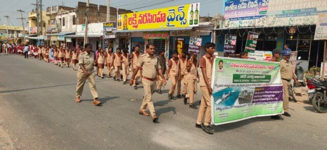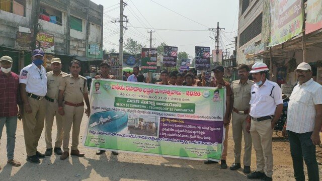 రహదారి భద్రత నిబంధనలను కచ్చితంగా పాటించాలని నినదిస్తూ ర్యాలీ నిర్వహించడం జరిగింది.