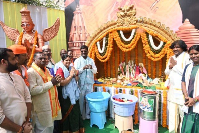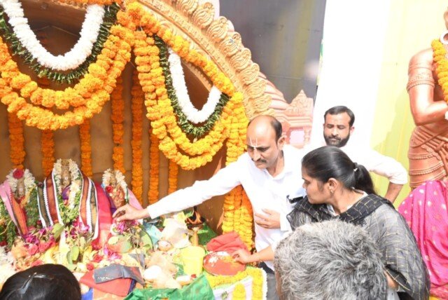 అక్షర న్యూస్ :లోక కళ్యాణార్థం సిద్దిపేట లో శ్రీ సీతారామచంద్రుల కళ్యాణం నిర్వహించామని కౌన్సిలర్ దీప్తి నాగరాజు, ఉత్సవ నిర్వాహక కమిటీ నాయకులు లక్ష్మీనాథం తెలిపారు. సిద్దిపేట జిల్లా కేంద్రంలోని సుభాష్ రోడ్డులో శివ్వ కాంప్లెక్స్, సుభాష్ రోడ్డు దుకాణ సముదాయాల ఆధ్వర్యంలో సీతారాముల కళ్యాణం అంగరంగ వైభవంగా నిర్వహించారు. కళ్యాణం అనంతరం భక్తులకు అన్నప్రసాద వికరణ కార్యక్రమం చేపట్టారు.ఈ సందర్భంగా వారు మాట్లాడుతూ అయోధ్యలో బాల రాముడి ప్రాణ ప్రతిష్ట జరిగి రెండు సంవత్సరాలు నిండిన సందర్భంగా ద్వితీయ వార్షికోత్సవంలో భాగంగా సిద్దిపేటలో కళ్యాణం నిర్వహించామన్నారు. ఆ సీతారాముల చల్లని దీవెనలు ప్రజలందరిపై ఉండాలని…. వర్షాలు సమృద్ధిగా కురిసి పాడి పంటలు బాగుండాలని ఆకాంక్షించారు. కళ్యాణ మహోత్సవంలో పాల్గొని స్వామివారి ప్రసాదం స్వీకరించిన వారందరికీ ధన్యవాదాలు.