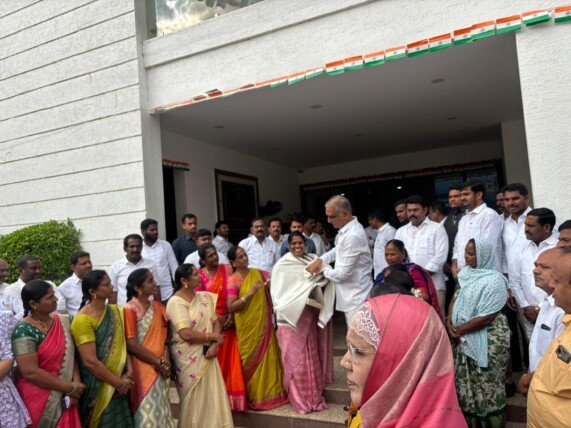 అక్షర న్యూస్ :సామాజిక సేవ,మహిళా చైతన్య కార్యక్రమాలకు గుర్తింపుగా సిద్దిపేటకు చెందిన గాడిపల్లి అరుణారెడ్డికి తెలుగు వెలుగు జాతీయ నంది పురస్కారం దక్కడంతో సోమవారం మాజీ మంత్రి హరీష్ రావు ఆమెను అభినందించారు.జాతీయ గుర్తింపు లభించడం పట్ల హర్షం వ్యక్తం చేస్తూ శాలువా కప్పి సన్మానించారు.ఇదే స్ఫూర్తితో మరిన్ని మంచి సామాజిక కార్యక్రమాలు చేయాలని సూచించారు.భవిష్యత్తులో మరిన్ని అవార్డులు దక్కించుకోవాలని హరీష్ రావు ఆకాంక్షించారు.