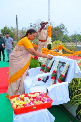 అక్షర న్యూస్ :77 గణతంత్ర దినోత్సవం పురస్కరించుకొని సమీకృత జిల్లా కార్యాలయాల సముదాయంలో నిర్వహించిన కార్యక్రమానికి ముఖ్య అతిథిగా జిల్లా కలెక్టర్ కె. హైమావతి జాతీయ పతాకావిష్కరణ గావించారు.